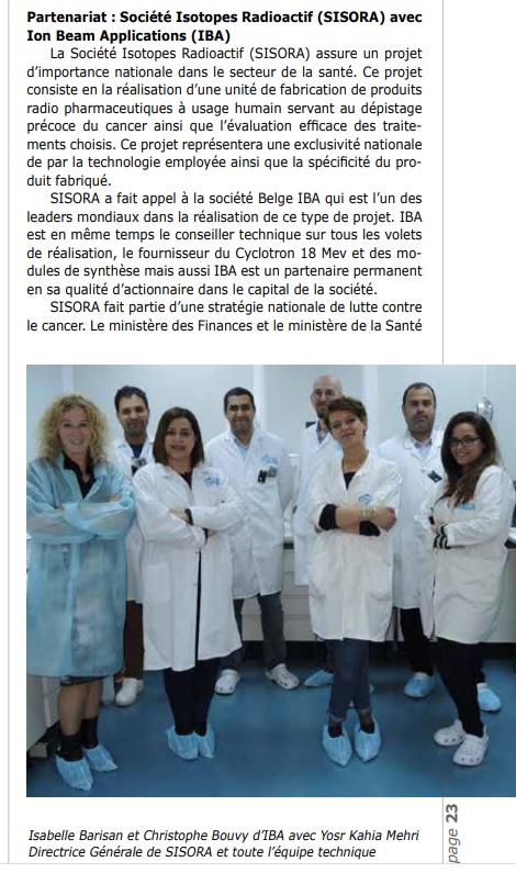 Publication d'un article sur le projet de notre Societe Isotope Radioactif "SISORA" dans la nouvelle édition de la revue trimestrielle " Lettre de la Délégation générale Wallonie-Bruxelles en Tunisie.